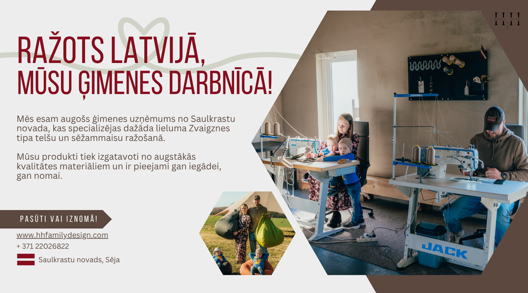 Mēs esam Zvaigznes tipa telšu un unikālu dizaina šēžammaisu ražotāji no Saulkrastu novada.