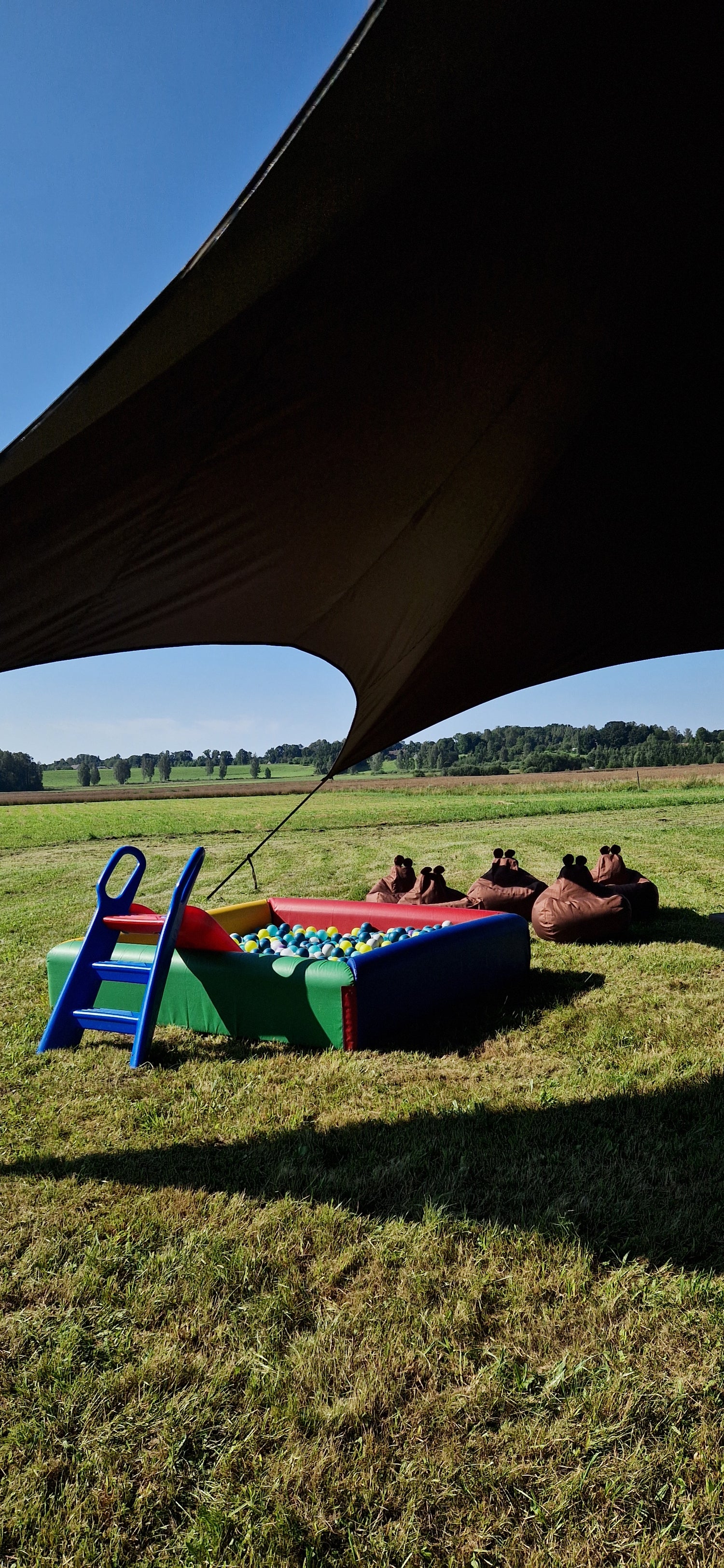 Piedāvājam bērnu bumbu baseinu ar slidkalniņu nomai — drošu, krāsainu un piemērotu gan iekštelpām, gan āra pasākumiem.